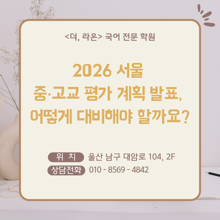 2026 서울 중‧고교 평가 계획 발표, 어떻게 대비해야 할까요? <더, 라온> 국어 전문 학원