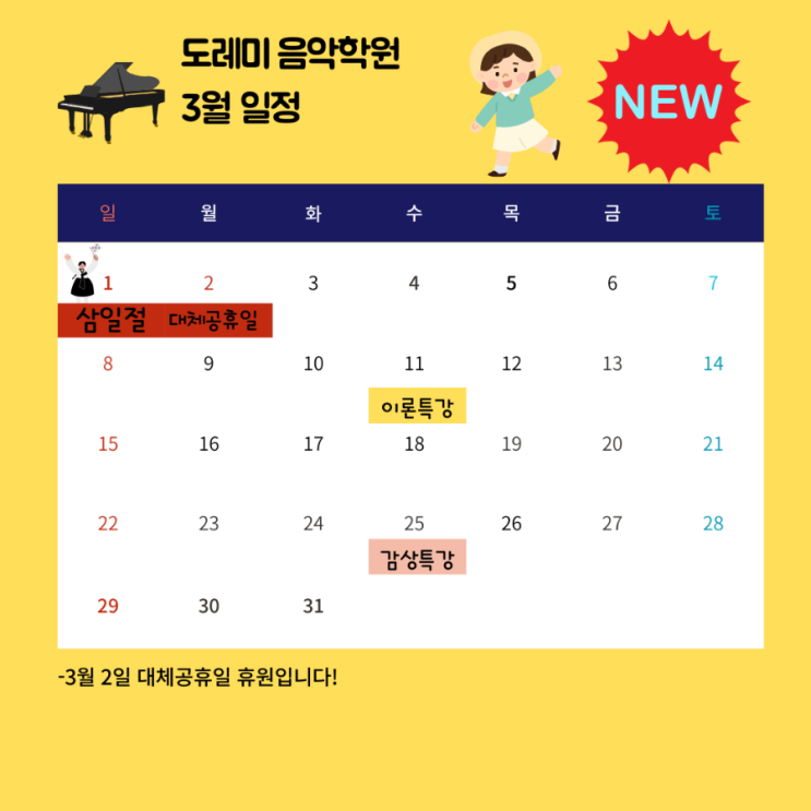2월 설날연휴 휴무일정 안내 인천실용음악학원 검단실용음악학원