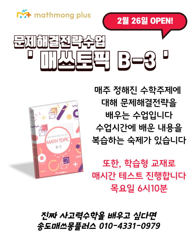 [송도 수학학원] 신규수업 안내 / 문해력수학 / 송도매쓰몽플러스학원