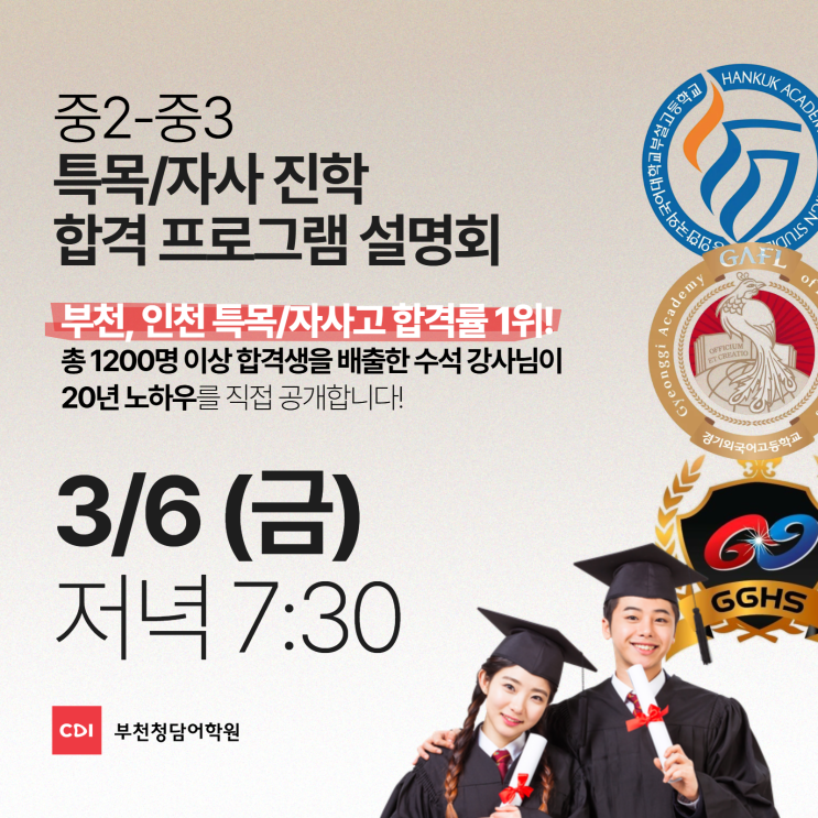 [부천청담어학원] 중2, 중3 특목/자사 합격 프로그램 설명회 3/6 (금) 저녁 7:30