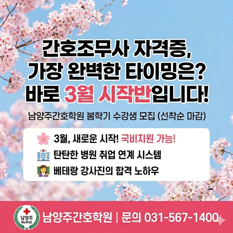 간호조무사 자격증, 가장 완벽한 타이밍은? 바로 3월 시작반입니다!