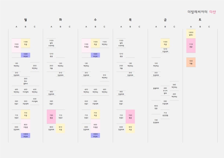 [더발레씨어터 다산] 성인 취미 시간표 ㅣ 발레 초급 - 월 수 금 오전 11시 / 박누리T, 최선경T - 월 수 오후 7시10분 / 박누리T - 화 목 오후 9시10분 / 최선경T ㅣ 발레 + (초급) - 토 오전 10시 / 조이서T ㅣ 발레 초.중급 - 월 수 오전 11시 / 김유진부원장T - 월 수 오후 8시 20분 / 박누리T ㅣ 발레 중급 - 화 목 오후 7시30분 / 김유진부원장T, 최선경T - 토 오전 11시10분 / 지경서T - 화 목 오후 12시10분 (개강예정) ㅣ 작품 - 토 오후 1시 / 지경서T - 화 목 오후 2시 (개강예정) ㅣ 포인트슈즈 - 월 수 오후 12시40분 (4월 개강) - 월 수 오후 10시 (4월 개강) ㅣ 발레스트레칭 - 화 목 오전 11시 (개강예정) ㅣ 성인 컨템 - 금 오후....... <img src="https://blogthumb.pstatic.net/MjAyNjAzMjBfMjcx/MDAxNzczOTcwNzQxNDUz.RVz2wJPr49su31bL604XaCl00C7SO82jYssB2mTI4qgg.gzFSJ4GX7t6ZooueDpGfxHviMr2-bqHeUaAxJc3YOA4g.JPEG/image001.jpg?type=s3" />