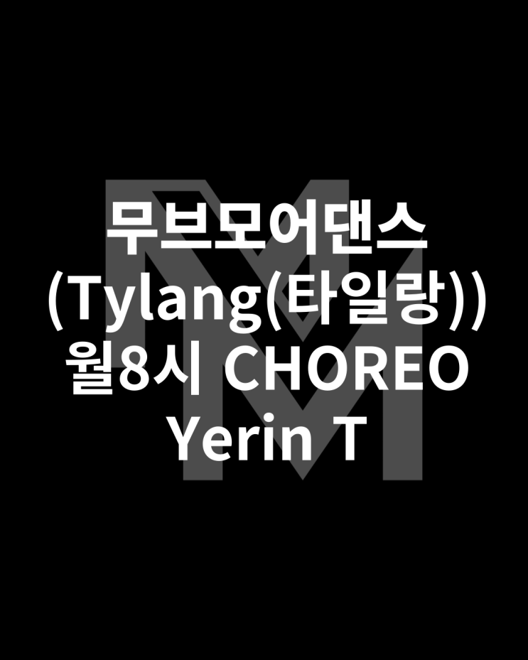 #다산댄스학원 #무브모어댄스 2026 M.M.F vol.3 < Tylang(타일랑) > Yerin T 월8시 CHOREO 클래스 안녕하세요 #다산댄스학원 #무브모어댄스 입니다 서툴렀던 시작이 모여 하나의 무대를 완성하는 순간이에요 처음엔 익숙하지 않았던 동작들이 반복된 연습을 통해 점점 자연스럽고 자신감 있는 표현으로 이어졌습니다 작은 변화들이 이어져 지금의 큰 성장을 만들어낸 순간, 아이들의 이야기가 그대로 담긴 공연 영상입니다 ✨ 이번 영상은 Yerin T 선생님의 코레오 클래스입니다~!~! 월요일 8시부터 수업이 진행되고 있구요 주 1회 60분 수업입니다 Yerin T 선생님 코레오반 친구들 이번 무대를 보니 실력이 정말 많....... <img src="https://blogthumb.pstatic.net/MjAyNjAzMjVfNzUg/MDAxNzc0NDM1NTAzNTY3.spS0Sh0_neSxJMyJ3tQiMJxwIN-4LwAeg9ptzzVj23cg.sxaj90Inkh8mU_10d6IqOFB6I-KkbZl0us_vVh8jxyMg.PNG/022.png?type=s3" />