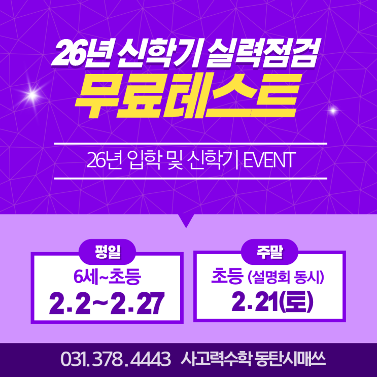 동탄시매쓰 신학기 실력점검! 2월 무료테스트