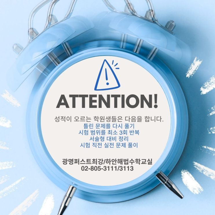 안녕하세요 ! 이투스247광명점입니다 오늘은 3월 학력평가 To Do List 함께 살펴보려합니다! 해당 포스팅 출처는 이투스 교육평가연구소 입니다! 3월 학력평가 전, 이것만은 꼭 준비하세요! To Do List 총정리 3월 학력평가는 한 해의 시작을 점검하는 중요한 시험인 만큼, 지금 어떻게 준비하느냐가 앞으로의 학습 방향에도 큰 영향을 줍니다. 시험 직전, 꼭 챙겨야 할 핵심 준비사항을 정리해드릴게요! 1. 시험 시간 확인 & 나만의 전략 세우기 시험 준비의 기본은 ‘시간’과 ‘순서’입니다. 과목별 시험 시간과 진행 순서를 미리 확인하고, 실제 시험과 비슷한 시간대에 문제를 풀어보는 연습을 해보세요. 특히 탐구 영역은 과목별....... <img src="https://blogthumb.pstatic.net/MjAyNjAzMjFfNjAg/MDAxNzc0MDgyNzg3MTk4.L3W49YX_Ozn8SzEB4zX6gZXhIjY1QEfi2iXhs1R5vgog.lQYriicWdnT9iSnSgyhXFRW5gj0C87w8AJfgL6slLmMg.JPEG/%C0%B0%B0%A2%C7%FC_%BE%E7%BD%C4%28%BA%B8%B6%F3%29.jpg?type=s3" />