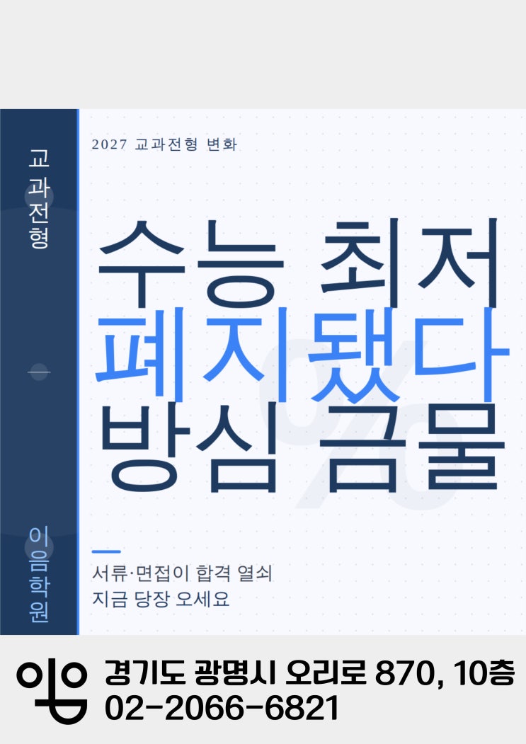 [철산동 국,영,수,과 전문학원] '교과전형에서 수능 최저가 사라졌다' — 내신 1등급도 방심하면 안 됩니다