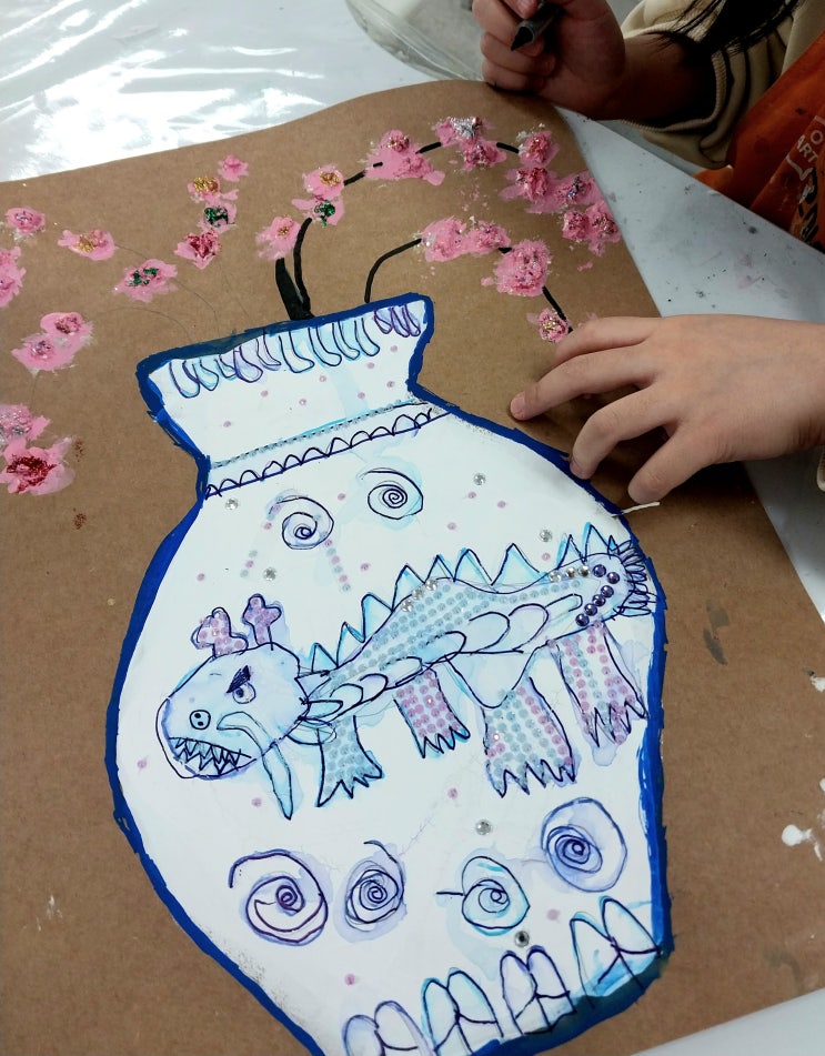 오아트미술 Art education 평택고덕하늘채미술학원 / 아동미술 / 정규클래스 / 원데이클래스(취미미술) 안녕하세요 감성과 표현의 균형을 키워가는 예술 공간 오아트미술학원입니다 이번 시간에는 아이들과 함께 도자에 대해 알아보고, 청색의 안료를 활용한 청룡 백자에 대해 알아보았습니다 . 조선시대 백자는 단순한 도자기가 아니었어요. 잡티 하나 없는 순백의 표면과 단아한 형태는 조선 선비 정신의 상징이었고, 그중에서도 청룡이 힘차게 그려진 청화백자는 왕실에서만 사용이 허락된 최고의 사치품이었습니다. 그 신비로운 푸른빛의 비밀은 바로 코발트 블루 안료에 있었습니다. 이 안료는 페르시아(이란) 지역의 광산에서 생산되어, 원....... <img src="https://blogthumb.pstatic.net/MjAyNjAyMjVfMTAz/MDAxNzcyMDEzMTE3MTA0.iust8KQjrfBEJ9Z5WY13A22H-6u8D4ZW3uL-Jan5zTwg.CqhB312SmAdEh3ZEC91xoK07iK7R1aWh6XTiQb4r1xQg.JPEG/KakaoTalk_20260225_181107764_12.jpg?type=s3" />