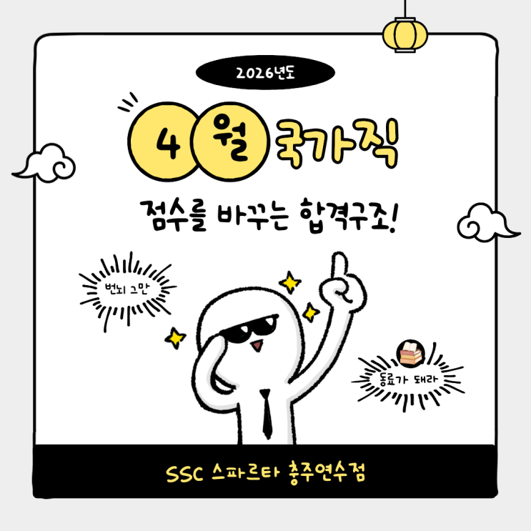 안녕하세요. SSC 스파르타 충주연수점입니다. 요즘 주변을 둘러보면 매화와 동백처럼 봄을 알리는 꽃 소식이 하나둘 들려옵니다. 하지만 독서실에 있으면 마냥 들뜬 기분만 느껴지지는 않습니다. 곧 다가올 시험을 앞두고 묵묵히 노력하는 원생들이 있기 때문입니다. 국가직 준비 방식이 중요한 이유 26년 국가직 시험은 4월 4일 토요일 봄에 치러집니다. 많은 수험생들이 아직 시간이 남아 있다고 생각합니다. 하지만 자연은 다릅니다. 꽃은 봄에 피지만 꽃눈은 이미 겨울 이전에 완성됩니다. 합격도 같습니다. 시험 당일은 결과를 확인하는 날일 뿐 실제 준비는 그 이전의 시간에서 이미 결정됩니다. 그래서 질문을 바꿔야 합니다. '왜 점....... <img src="https://blogthumb.pstatic.net/MjAyNjAyMjRfNSAg/MDAxNzcxOTE0MjAxMjk4.UG8t_SaFyzCify8VgD7HWHaCXkF79IDlj1hkwgv3NDEg.vjrw4IDM5yWuSsI8Luo7ehboV_yx1rZ5JQ_h5Cu1eQ0g.PNG/1.png?type=s3" />