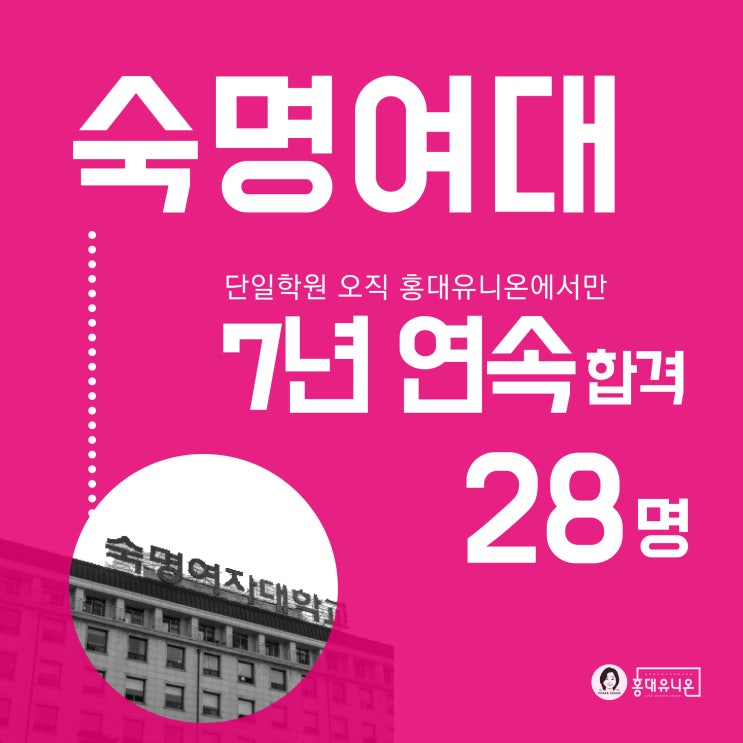 숙명여대 한해도 빠짐없이!! 2026년도 6명 합격!! 7년간 28명 합격!! 최근 3년간 16명 합격!! 홍대유니온 미술학원 숙명여대 합격생들이 직접 말하는 “합격을 만든 수업의 차이” "홍대유니온은 모든 자료들의 수준이 높아서 보고 따라그릴 수 있는 것들이 많았던게 실기력을 올리는데 큰 도움이 되었던 것 같아요. 좋은자료를 제공해 주시고 적극적으로 보고 그릴 수 있는 수업을 해주신게 정말 좋았습니다. 특히나 화면자료와, 화면응용 우수작/합격작을 같이 카피했던게 화면 이해도와 응용도를 높이는데 좋았어요." -2026 수시 숙명여대 합격생 임○리- "홍대유니온 수시 선행반에서 화면구성이나 이론같은걸 배우는데, 있는....... <img src="https://blogthumb.pstatic.net/MjAyNjAyMjJfMTU3/MDAxNzcxNzY1MjE4MDE4.lCltechjAxW5caIaqtBkhjsuOiYAuqEsx_M04D-Q2V8g.urgEQ1VlK-Z7zwtvgPCQbcPV2rnixJm5Kc7tzV3hIb4g.JPEG/%C8%AB%B4%EB%C0%AF%B4%CF%BF%C2%B9%CC%BC%FA%C7%D0%BF%F8_%C8%AB%B4%EB%C0%AF%B4%CF%BF%C2_%B9%CC%B4%EB%BC%F6%BD%C3_%B9%CC%B4%EB%C1%A4%BD%C3_%B9%CC%B4%EB%BC%F8%C0%A7_%B9%CC%B4%EB%BC%F6%BD%C3%C7%D5%B0%DD_%B9%CC%B4%EB%C1%A4%BD%C3%C7%D5%B0%DD_%B9%CC%B4%EB%C7%D5%B0%DD_%B9%CC%B4%EB%BB%F3%C0%A7%B1%C7_%2812%29.jpg?type=s3" />