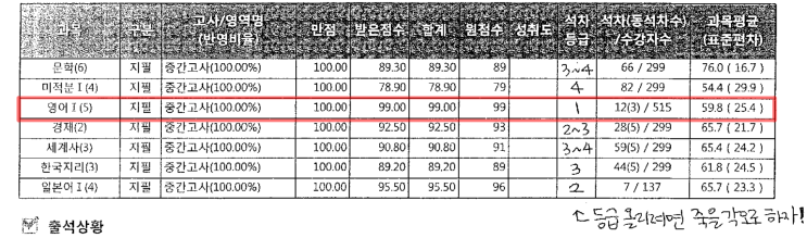 고2 1학기 성적표무너진 순간, 성적을 버텨준 과목 하나
