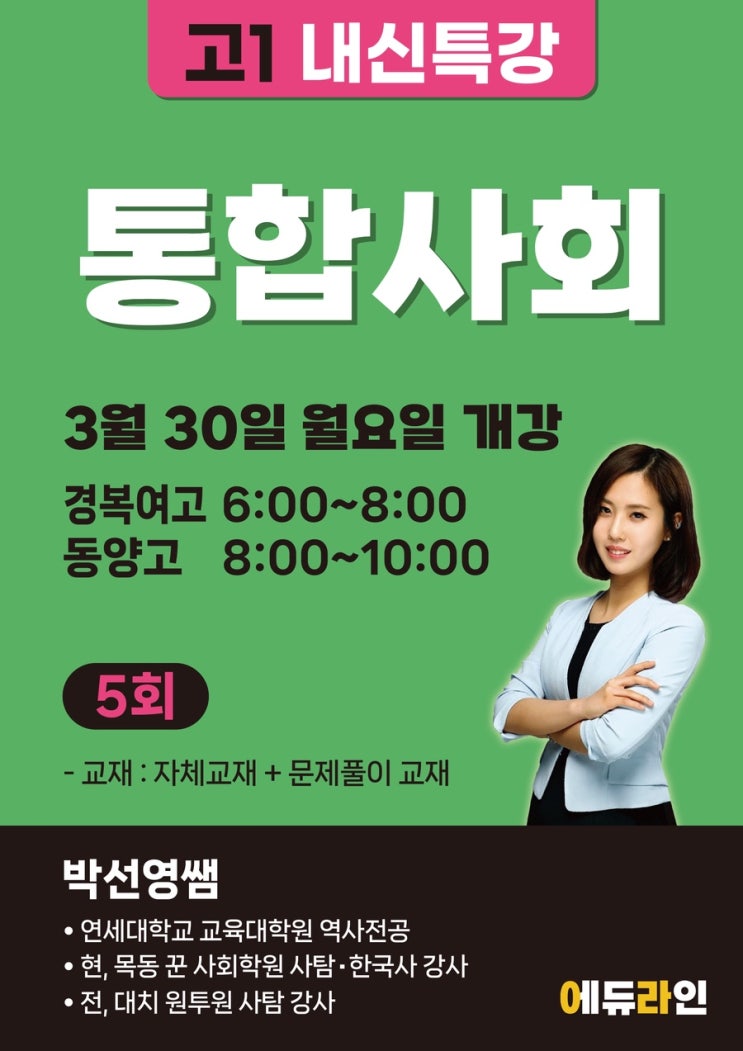 고1 통합사회 내신특강 개강 경복여고 동양고 마포고 영일고 세현고