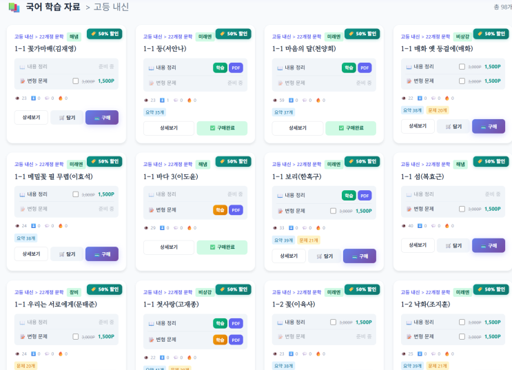 [22개정 문학] 비상강, 해냄, 미래엔 교과서[여의도 푸른국어학원&kshop]