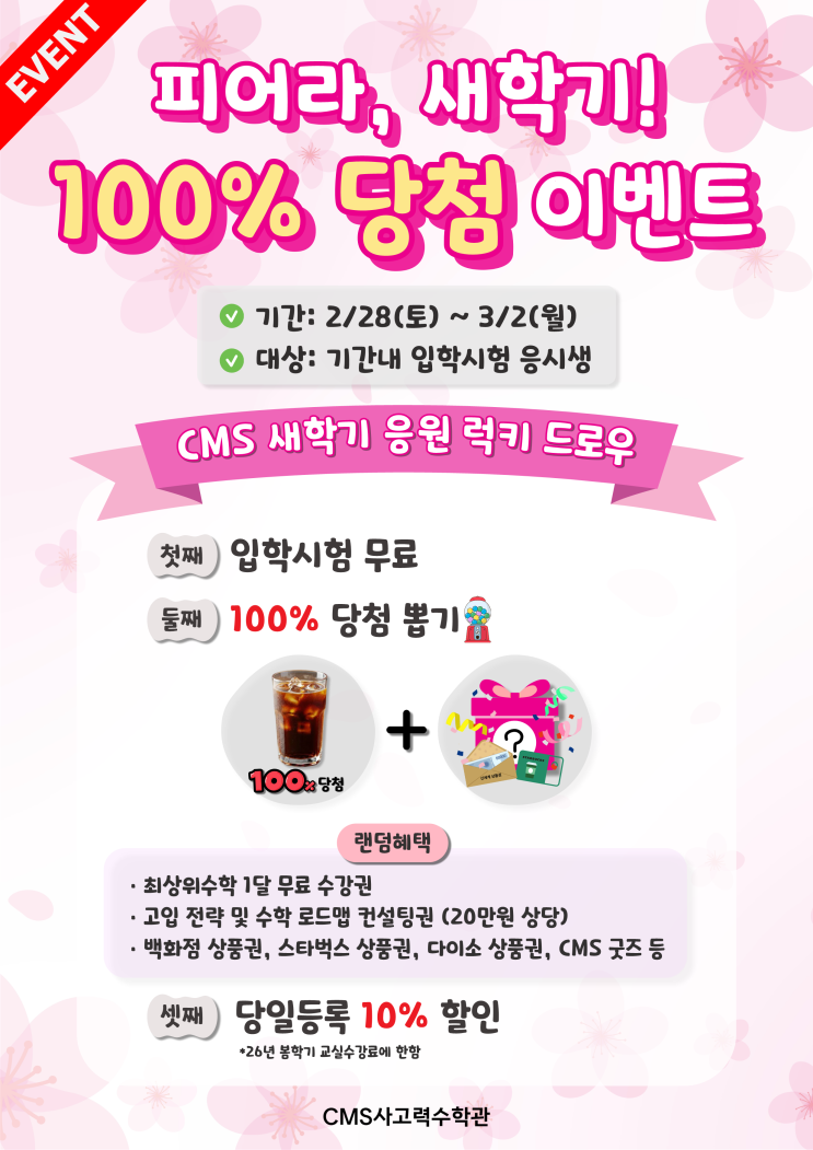 [CMS 대치사고력] 피어라새학기! 100%당첨 이벤트