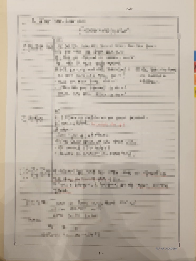안녕하세요, 알파 아카데미입니다. 중학교에 올라오면 많은 학생들이 가장 먼저 느끼는 변화가 바로 내신 시험의 난이도와 학습량입니다. 초등학교 때처럼 단순히 문제집을 풀어보는 방식으로는 시험 범위를 체계적으로 관리하기 어렵고, 특히 수행평가, 학교 프린트, 교과서 내용, 수업 필기까지 내신 관리를 위해 챙겨야할 자료가 다양하기 때문에 보다 체계적인 내신 관리 시스템이 필요합니다. 오늘은 이러한 중등 내신 관리 필요에 따라 설계된 알파아카데미의 중등 내신관리 프로그램의 영어 내신 수업을 일부 소개하고자 합니다. 1. 과목별 학습 계획 관리 내신 성적을 안정적으로 관리하기 위해서는 무엇보다 학습 계획과 학교 일정 관리....... <img src="https://blogthumb.pstatic.net/MjAyNjAzMTVfMTI1/MDAxNzczNTA4NjQxNzEw.Z9MS1u-UpboAPGBSXnMF3PAdIQIaMZT-1o9Y2yMR4cUg.07bN87KH4TpGIRx1qrNVp_DRua80Fn2vVQDmGrLslfwg.JPEG/KakaoTalk_Photo_2026-03-14-19-58-36_005.jpeg?type=s3" />