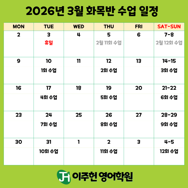 이주헌 중등부 영어학원은 이주미이주헌영어학원의 중등부로서 현행 입시 제도에 최적화된 영어 커리큘럼을 바탕으로 수준 높은 교육을 제공하고 있습니다. 대신중, 인왕중, 배화여중, 동명여중, 중앙중, 창덕여중, 덕성여중, 인창중, 홍은중, 청운중 학생들을 대상으로 진심을 다해 진짜 영어를 가르치고 있습니다! #서대문영어학원 #독립문근처영어학원 #이주헌영어 #이주미영어학원중등부 #인왕중영어학원 #홍은중영어학원 #덕성여중영어학원 #중등영어학원추천 #중등부전문영어학원 #이주헌중등부영어학원 <img src="https://blogthumb.pstatic.net/MjAyNjAyMjZfMjY3/MDAxNzcyMDk3ODU5NDM3.PVrhVMns-NFzsrMwN6f5S-FVy53c1d9cRIlRuO-Dbk0g.GM8_Z1xlFRZr2ksIkDpGGkYyJTEUI-j6lVoR6OEIPZkg.PNG/2026%B3%E2_3%BF%F9_%C8%AD%B8%F1%B9%DD_%BC%F6%BE%F7_%C0%CF%C1%A4.png?type=s3" />