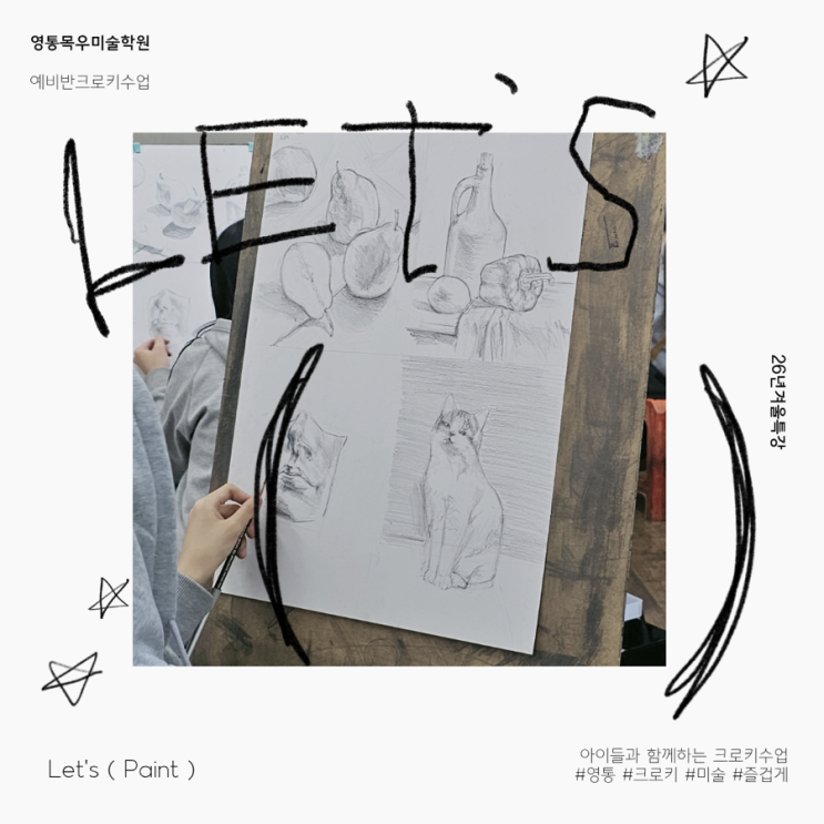 안녕하세요! 수원 영통목우미술학원 입니다! 벌써 2월 중반이 지나가는군요! 곧 새로운 학기의 시작이 다가오면서 아이들도 바쁜 2월을 보내고있다고 생각해요! 곧 다가올 새학기를 맞이하여 영통목우미술학원 예비반은 아이들의 기본기를 탄탄하게 만들기위한 수업을 진행하고 있는데요! 오늘은 기본기 수업 중 크로키에 대한 글입니다! 예비반 아이들의 크로키하는 모습 같이 보러가보실까요?? 영통목우미술학원 크로키 수업, 왜 필요할까요? 아이들이 미술을 배우면서 가장 많이 어려워하는 부분 중 하나가 ‘사람을 자연스럽게 그리는 것‘입니다! 영통목우미술학원의 크로키 수업은 이러한 인체 표현의 기초를 단단하게 다져주는 중요한 수....... <img src="https://blogthumb.pstatic.net/MjAyNjAxMzFfNjIg/MDAxNzY5ODYzNDQ2MTc0.JLgntPIUtLVXNfDqDOnhFYdlF1hBHiOdp7tDP8GW-Vwg.0JT0dybxyR8H1DjA9gQ6wB6GRWUKFpltEdLUtY1EK98g.PNG/IMG%A3%DF1131.PNG?type=s3" />