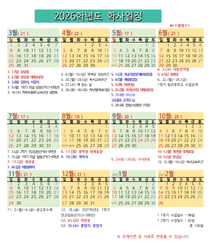 광교 호수초 2026 학사일정!! 체크하세요~!