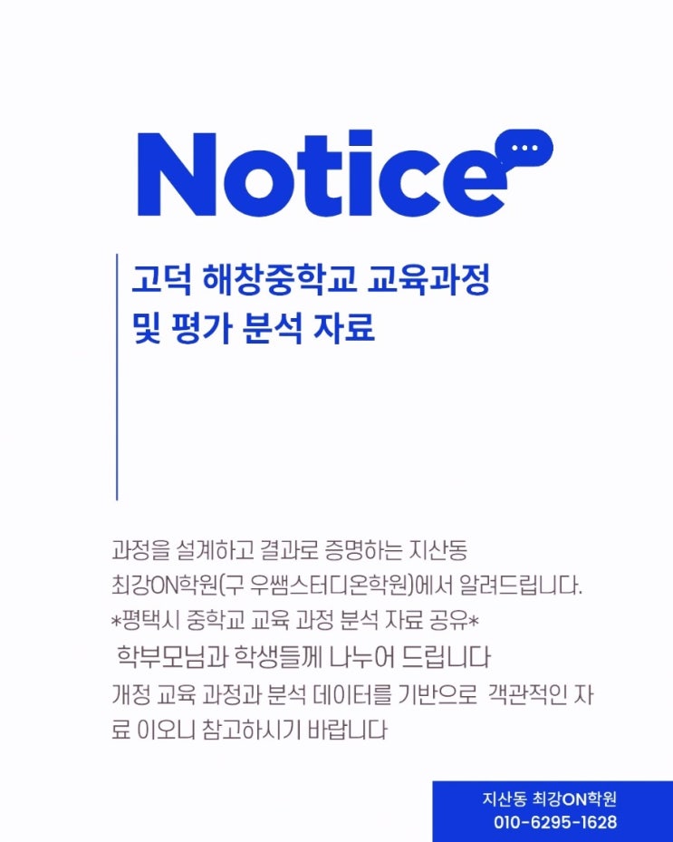 지산동 최강ON학원 평택 고덕 해창중학교 교육과정 분석 안내