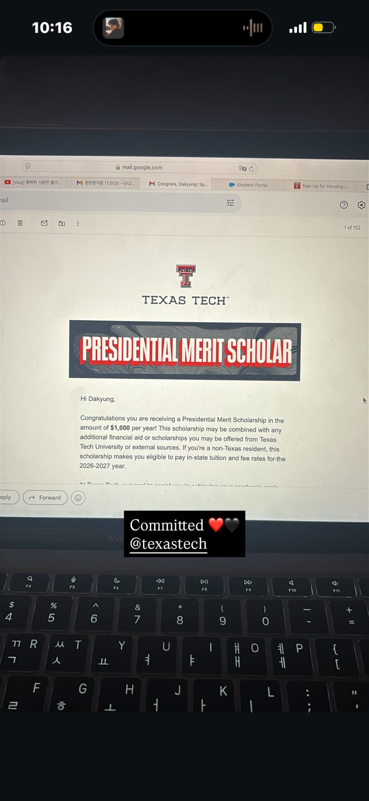 ★이수연 영어 "대단한 입결 소식" Texas Tech University 합격!!
