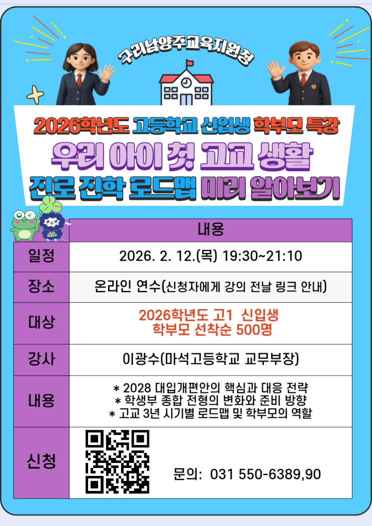 2026 고1 신입생 학부모 특강 알림 <img src="https://blogthumb.pstatic.net/MjAyNjAyMDRfMTcg/MDAxNzcwMTgwMzkzNjYy.Nhcag_4IEpl_kL5TiW8ZeZNJ0RZinjpldNhZlP4atBIg.uSyhYSTShXNWTDMLmsUn_7tKCy150oSZMyy3LqQwneog.PNG/20260203_142205489_94016.png?type=s3" />