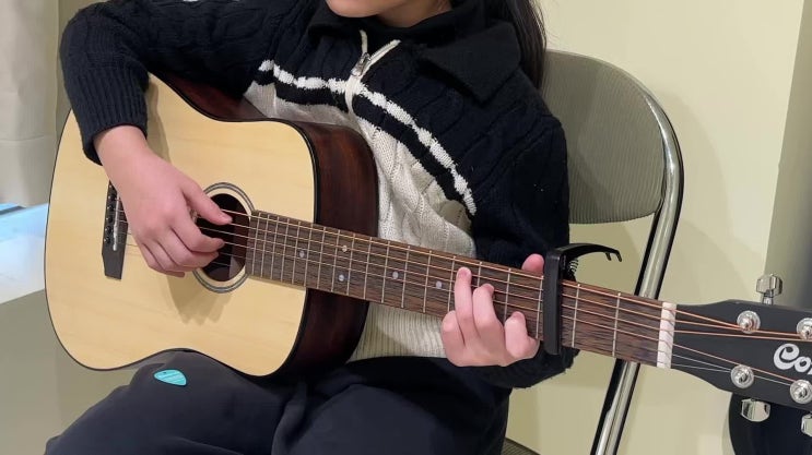 안녕하세요 노이쌤입니다. 새해 잘 보내고 계신가요? 날씨는 더 추워지는듯합니다 감기 조심하세요~ 오늘은 초등학생 친구가 연주한 아이유의 ‘너의 의미’ 영상을 가져왔습니다. 손도 작은데 아르페지오를 어찌나 잘 따라하는지ㅎㅎ 레슨을 해보면 연주 사운드도 연주자의 성격을 닮는듯 합니다. 우리 연주자 친구가 소녀소녀하니 연주 소리도 어여쁘네요. 기타에는 다양한 연주법이 있습니다. 피크로 신나게 긁으며 연주하는 스트로크 그리고 핑거로 연주하는 핑거스타일 저학년 수강생들을 봐도 알 수 있듯이 손이 작다고해서, 힘이 약하다고해서 악기 소리가 잘 안나는것이 아닙니다. 연주할때 필요한 부분만 힘을 주고 불필요한 힘....... <img src="https://phinf.pstatic.net/image.nmv/blog_2026_01_28_360/oiHTHZ9crr_01.jpg?type=f480x480" />