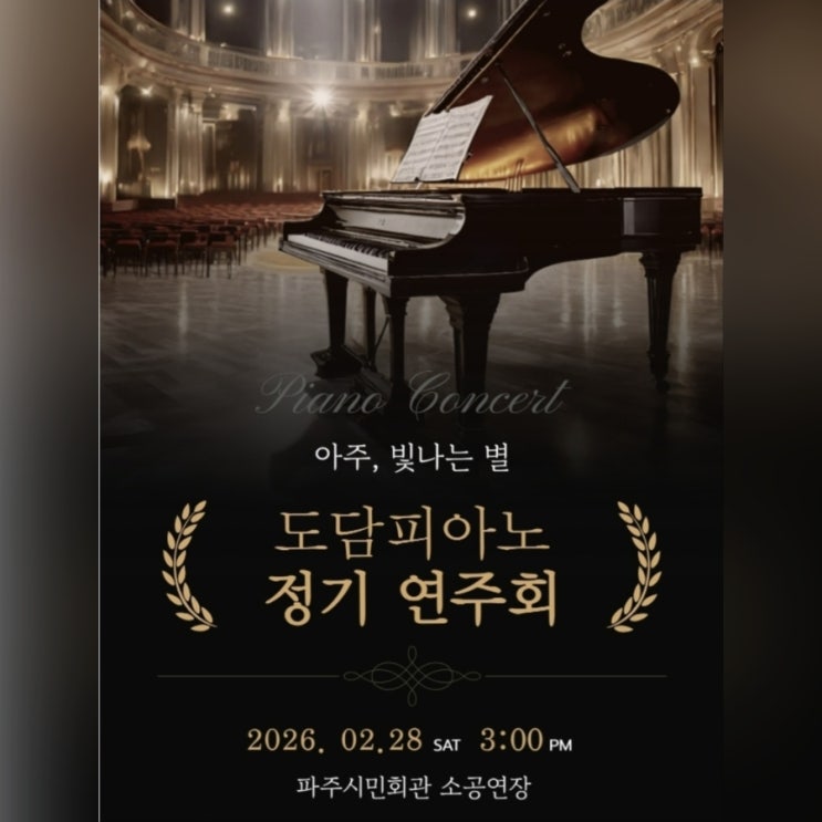 2026정기연주회 Comming Soon! 이 무대는 경쟁을 위한 자리가 아니라 아이들이 음악을 즐기며 성장해온 시간을 함께 나누는 자리입니다 아이들의 성장과 꿈을 응원해 주세요~♡ #2026정기연주회 #피아노정기연주회 #파주문산피아노 #소수정예클래스 #취미부터전공까지 #개인지도전문 #도담피아노 #도담피아노음악교습소 <img src="https://blogthumb.pstatic.net/MjAyNjAyMTlfMjMw/MDAxNzcxNTA0NTMyNjY5.02A2yhGiSJjQipQ0nquq-E6oGL5CsesEE8RfXnD5rwAg.kOiWUNkas6CH3WnxsBeu3lzbnVlUuI6ApB-hvKb3ecwg.JPEG/900%A3%DFCYMERA%A3%DF20260219%A3%DF213327.jpg?type=s3" />