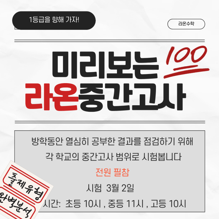 미리보는 중간고사 3월2일 라온고사 진행합니다