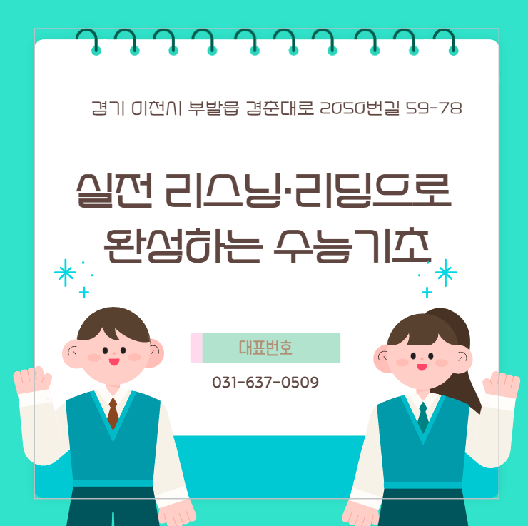 안녕하세요 YBM ECC 이천점입니다! 수능 영어는 단기간에 완성되는 과목이 아닙니다. 듣고 이해하며 읽고 생각하는 힘을 꾸준히 쌓아야 안정적인 점수가 나옵니다. 사동중수능영어 YBM ECC 이천점은 수능영어의 기초를 실전 리스닝과 리딩 훈련으로 차근차근 완성합니다. 수능 리스닝은 단어를 아는 것보다 흐름을 파악하는 능력이 중요합니다. 문장의 핵심을 듣는 훈련이 부족하면 실수로 이어집니다. 사동중수능영어 YBM ECC 이천점은 실전과 유사한 듣기 환경으로 집중력을 길러줍니다. 단순 문제풀이식 리스닝은 한계가 있습니다. 사동중수능영어 YBM ECC 이천점에서는 문장 구조를 이해하며 듣는 훈련을 병행합니다. 자주 나오는 표현과 흐....... <img src="https://blogthumb.pstatic.net/MjAyNjAxMTVfMjgx/MDAxNzY4NDQxNjM5NzA4.XdohUbXdhtsPS1ePCVRJLJY51tW9KEkkDreecFSqZCUg.HHBDt1bLprZzYDmcVoDLu7uEGwLukzA_DhrmnYH0CCcg.PNG/image.png?type=s3" />