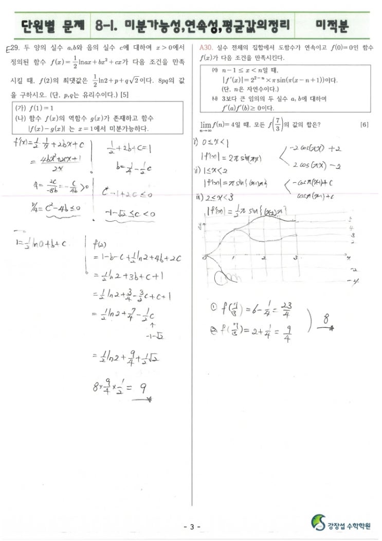 단원별문제-미적-8-1.미분가능성,연속성,평균값의정리-원장풀이