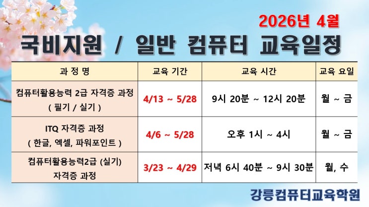 강릉간호학원 개강 2026년 4월 14일 ~2027년 2월 26일