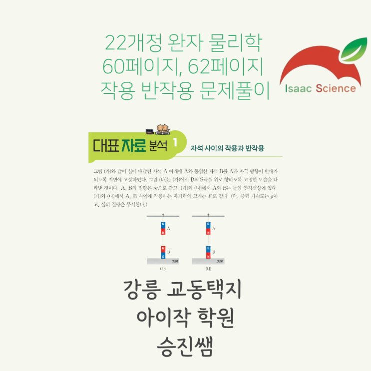 https://youtu.be/rqqRw0W90Q8 안녕하세요 강릉 교동택지 아이작 학원 승진쌤입니다 :) 이번 영상에서는 22개정 완자 물리학 60페이지, 62페이지 작용 반작용 주요 문제를 풀어보겠습니다. 자세한 풀이는 영상을 참고해주세요. <img src="https://blogthumb.pstatic.net/MjAyNjAyMTFfMjU1/MDAxNzcwODAzMTgyMTI4.WFnhZLyaRG4HA-g0ypIA8AE4dPlJBB3eImqxVdbp4wYg.hseXgjx4oELVTFxV4FnPHnvdSjVzWaGSCGBwPqQhE0Eg.PNG/%C1%A6%B8%F1%C0%BB_%C0%D4%B7%C2%C7%D8%C1%D6%BC%BC%BF%E4..png?type=s3" />
