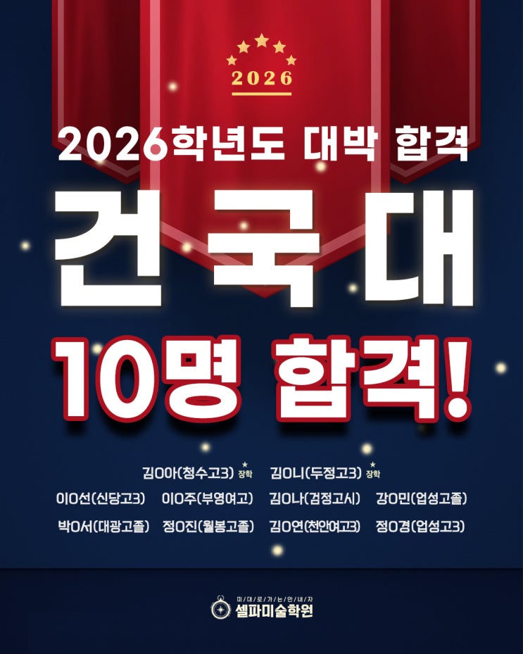 2026학년도 '건국대 미대' 10명 합격! 장학 합격! | 불당셀파 [불당동미술학원/천안입시미술/미대합격]