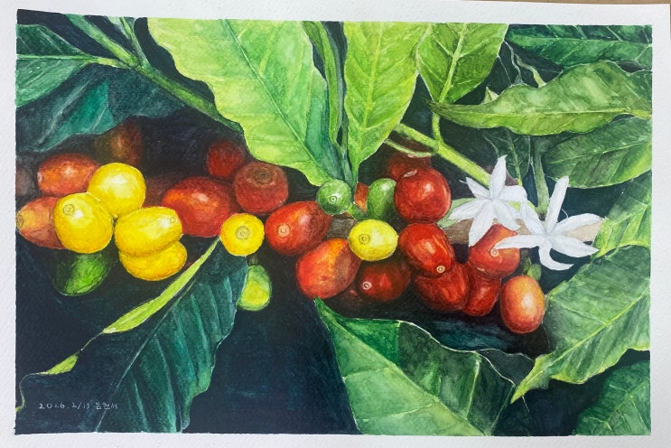 중3 소년의 붓끝에서 익어가는 향기: 수채화로 피어난 '커피 열매'의 깊이 | 군산 브니엘미술학원