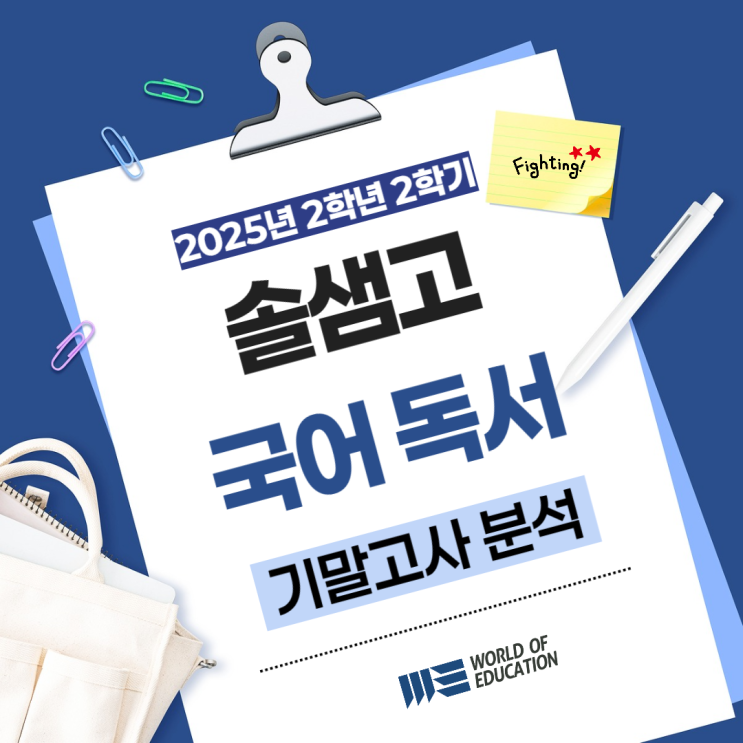 안녕하세요 :) 수능 원서 쓸 때까지 함께하는 입시 컨설팅 국어, 영어, 수학, 과학 입시전문 쌍문동 영어학원 월드에듀입니다. 고등학교 국어 시험은 단순히 ‘지문을 읽었는가’가 아니라, 지문을 어떻게 이해했는가를 묻는 시험입니다. 특히 독서 영역은 암기와 이해, 그리고 선지 분석 능력이 동시에 요구되기 때문에 출제 의도를 정확히 파악하는 것이 중요합니다. 이번 2025년 2학년 2학기 솔샘고 국어 독서 기말고사는 겉으로 보기에는 비교적 안정적인 구성처럼 보였지만, 일부 문항에서 학생들의 개념 이해 수준을 분명히 가르는 문제들이 포함되어 있었습니다. 오늘은 2025년 2학년 2학기 솔샘고 국어 독서 기말고사에 대해 자세히 알아....... <img src="https://blogthumb.pstatic.net/MjAyNjAyMjZfMzAw/MDAxNzcyMDg4Mjg3ODAz.0StE3xQAuKoz4gpVVCeNWJKycd353FtEPhCGLQ7RWecg.QskCryfhjrQd-y4LRw_aHZky3II2A4jZBjFbVwStmQIg.PNG/%BD%D6%B9%AE%B5%BF_%B1%B9%BE%EE%C7%D0%BF%F8_%281%29.png?type=s3" />