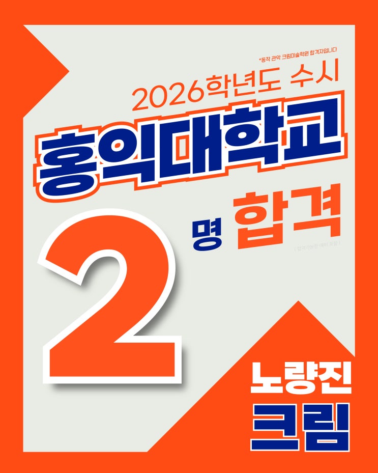 2026학년도 크림 합격자 홍익대학교 2026학년도 2명 합격! 안녕하세요. 동작구 노량진역 "노량진 크림 미술학원"입니다. 노량진 크림 미술학원 서울 경기 주요대학 합격 소식 전해드립니다~!! 2026학년도 ◇ 홍익대학교 ◇ 2명 합격! [ 오직 크림 미술학원 만의 합격자임을 알려드립니다 ] 관악&동작 통합 합격자 명단 - 노량진 크림 미술학원 입시 커리큘럼 노량진 크림 미술 학원만의 체계적인 커리큘럼을 통해 탄탄한 기본기를 다지고 개개인에 맞춘 수업 진도를 통해 실력을 향상시킬 수 있습니다. #기초드로잉 수업 컨투어 드로잉과 투시, 명도와 채도, 빛과 그림자, 기본 도형에 대한 이론 수업입니다. 컨투어 드로잉을 통해....... <img src="https://blogthumb.pstatic.net/MjAyNTEyMTdfMjg5/MDAxNzY1OTY2ODQ3NDk5.X5ZoG-Seo60OopEjkyOQq66JTNP2yQY0-SZbPTJG3Ucg.-D6aKyR5epRcousWGT6OAYXAiKczUpUp2wXThQSlTkYg.JPEG/KakaoTalk_20251217_155554423.jpg?type=s3" />