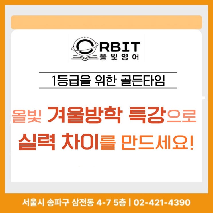 [삼전동 중고등영어전문 학원] 올빛 겨울방학 특강, 실력의 차이를 만들어 드립니다!