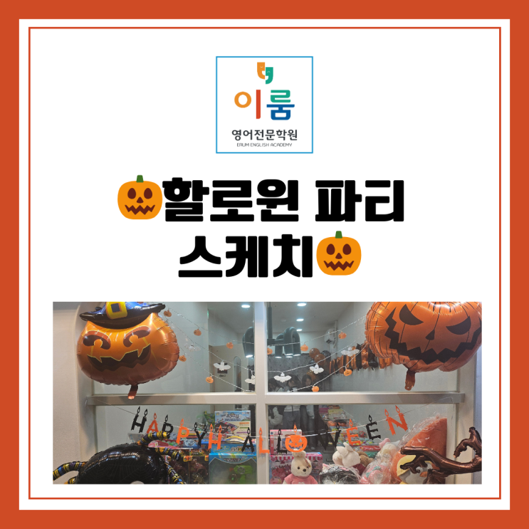 안녕하세요! 오늘은 지난 10월 31일, 온통 주황빛 설렘으로 물들었던 위례 초등 영어, 이룸의 특별한 하루를 공유하려고 합니다. 평소 열정적인 공부 열기로 가득했던 교실이 이날만큼은 환상적인 축제의 장으로 탈바꿈했는데요. 아이들의 웃음소리가 끊이지 않았던 그 생생한 현장 속으로 함께 가보실까요? 맛있는 즐거움이 가득! 스낵존 문을 열자마자 반긴 것은 코끝을 자극하는 고소한 향기였습니다. 달콤한 디저트부터 매콤달콤한 떡볶이까지, 풍성하게 준비된 스낵존은 단연 최고 인기였죠. 책상 앞에 앉아 펜을 잡던 손에 맛있는 음식을 들고 옹기종기 모여 앉은 모습이 참 정겨웠습니다. 평소보다 한층 부드러운 분위기 속에서....... <img src="https://blogthumb.pstatic.net/MjAyNjAxMDlfNTIg/MDAxNzY3OTYzMzU5NzQ2.MxirkRGeZ8x9n3tbc4zR5wO84e_gC8FVn4mAUr8IaOQg.tJyIY87UNPZqRbL89Cl5DnAWCg1vG67k-4e0OlDLwK8g.PNG/%C0%CC%B7%EB%C7%D0%BF%F8_%BD%E6%B3%D7%C0%CF%C0%C7_%BB%E7%BA%BB_%2811%29.png?type=s3" />