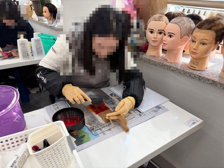 안녕하세요 씨유미용학원 입니다! 미용사(일반)자격취득과정 실기반이 어느 덧 절반을 훅~ 지나가고 있어요. 처음 빗과 가위를 잡아보고, 처음 와인딩을 해보며 이게 과연 될까? 했던 시간들이 엊그제 같은데 벌써 절반이라는 시간이 지나갔네요. 그러면서 서서히 진도를 하나씩 나가봅니다. 헤어컬러링 첫 수업과 블로드라이 첫 수업시간을 공유해드릴께요! 헤어컬러링 수업은 다른 과목에 비해 조금 쉽게 보일 수 있지만, 도구를 능숙하게 다룰 수 있으셔야 해요. 동작 하나하나, 자세 하나하나 흐트러지지 않게 해야하기 때문에 무.조.건. 깔끔하고 또 깔끔한 과정들에 대해 수업이 진행 되었답니다. 블로드라이 수업도 도구를 능숙하게 다를....... <img src="https://blogthumb.pstatic.net/MjAyNjAxMjNfMTgw/MDAxNzY5MTM0NjAyNjY2.TfSEksovKCm3Peir1QcXKFmo1hsbRgpD6ktyOMZDl6wg.WZv00TDHFEIAOQI-Ctsnqzg4PZz2k46VtR6Rhi8YJAEg.JPEG/KakaoTalk_20260123_111009219.jpg?type=s3" />