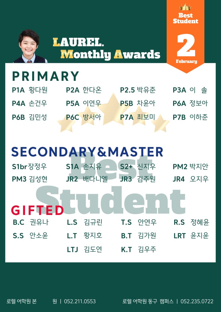 [울산중구영어학원] 로렐어학원 로렐어워즈 발표! (2월)