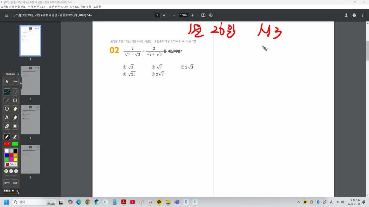 명문수학학원,청북수학학원,청옥중3수학[1월 26일]