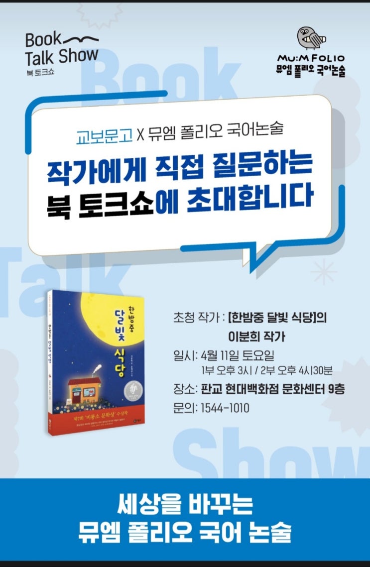 뮤엠폴리오 국어논술 북토크에 초대합니다~~
