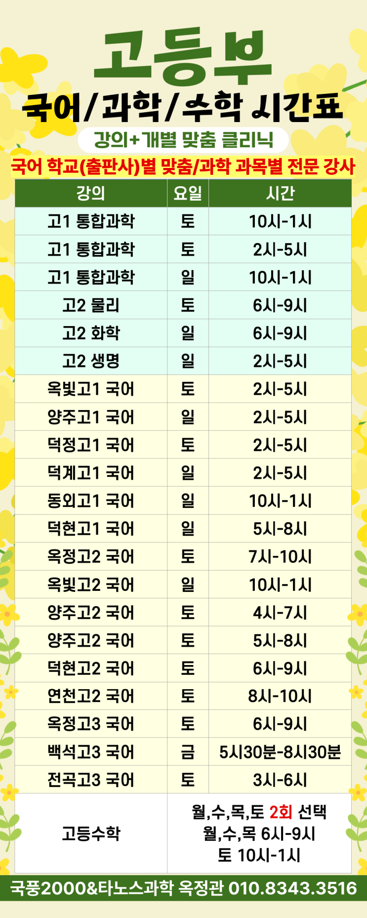 안녕하세요. 양주 옥정 국어 학원 양주 옥정 과학 학원 양주 옥정 수학 학원 양주 옥정 사회 학원 국풍2000&타노스과학 옥정관입니다. 오늘은 ✅중고등 내신대비 3월 개강! -국어/과학/수학 시간표- ✅친구소개 이벤트 ✅학원평가 시행 (외부생 응시 가능) ✅릴레이 오픈클래스 - 국어 *선착순 무료강의* ✅카이스트,의약대 등 합격 현황 안내해 드리겠습니다. --- <국어/과학/수 내신대비> -강의+개별 맞춤 클리닉- <고등 국어/과학/수학 시간표> <중등 국어/과학/수학 시간표> - <친구소개 이벤트> - <중고등 국어/과학 학원평가> *외부생 응시 가능* - <릴레이 오픈클래스 - 국어> 전 과목 전 강의 내....... <img src="https://blogthumb.pstatic.net/MjAyNjAyMjJfMjk4/MDAxNzcxNzM3MzE4NzA0.68nn2u4perzHQRH37U65m-0z3M_GLrcUUH5xhUYZDWkg.xfBz38-0eYUSotvXFJeMTdn2ihGak-eXY46ePRjMKb8g.PNG/2026%B3%E2-1%C7%D0%B1%E2-%B0%B3%B0%AD-%BD%C3%B0%A3%C7%A5-005_%282%29.png?type=s3" />