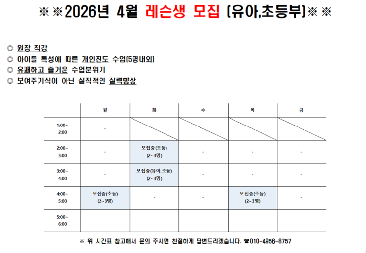 2026년 4월 레슨생 추가모집