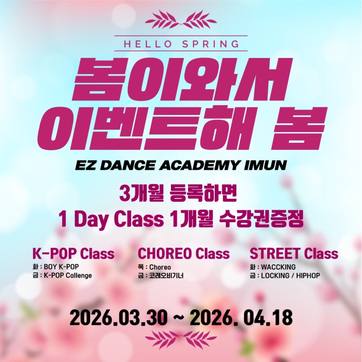 [외대 댄스학원] 4월 봄맞이 이벤트 공지