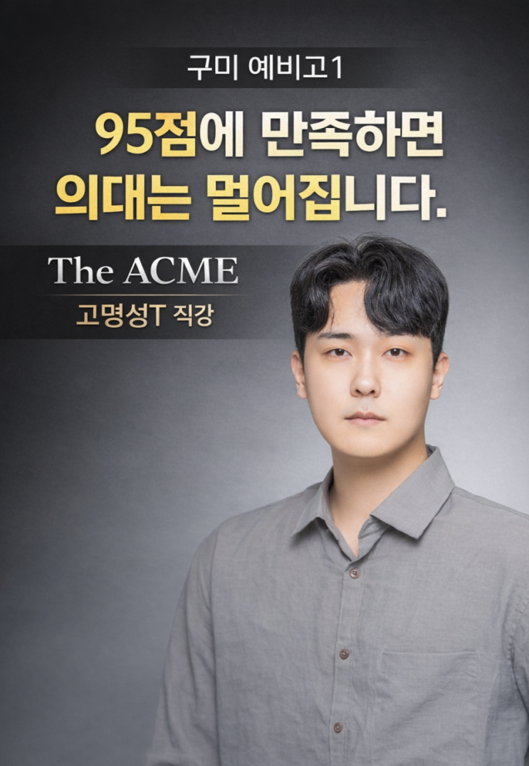 안녕하세요, 구미 상위권 수학의 기준 하이맵수학입니다. 중학교 성적표에 적힌 수학 95점, 100점. 학부모님들께는 안심의 숫자였겠지만, 형곡고·구미고·금오고·사곡고 등 입학을 앞둔 지금 그 숫자는 가장 위험한 신호일 수 있습니다. 1️⃣ 왜 중등 95점이 위험한 신호인가? 고등학교 수학은 단순히 '문제를 맞히는 시험'이 아니라 '완성도를 검증하는 시험'이기 때문입니다. 1등급의 문턱: 고교 내신에서 95점은 1등급을 보장하지 않습니다. 격차의 시작: 전교권 아이들과는 이미 '사고의 깊이'에서 차이가 벌어져 있을 수 있습니다. 수시의 골든타임: 메디컬·SKY 입시에서 고1 1학기 성적은 치명적인 출발점이....... <img src="https://blogthumb.pstatic.net/MjAyNjAyMTFfOTYg/MDAxNzcwODEzMzc4MDQ1.r4twBn-exo_C-opoQnhPhtmsxcaZLAo_5B_VXBheG1wg.LCs5U4-wYxtGDiknPEqkE8ix5c1rbkfH5K3phZo0hmEg.PNG/900%A3%DFfile%A3%DF00000000e7d472069647f411f65e7c3d.png?type=s3" />