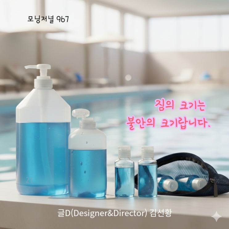 #나이팅게일 #검은나이팅게일 #기억하기 #돌아보기 대비도 중요하지만 감정 소모는 아깝습니다. * 2026년 1월 27일 화요일 모닝저널 967 모닝저널|불안의 크기 샤워 용기를 바꾸었습니다. 2리터 대용량 제품을 쓰다가, 수영 가방을 작은 것으로 바꾸면서 500밀리리터로 줄였습니다. 그런데 그것도 잘 잠기지 않았습니다. 물이 새지는 않을까, 가방이 젖지는 않을까 괜히 신경이 쓰였습니다. 자주 리필해야 하는 번거로움이 마음에 걸려 한참을 망설이다가, 결국 100밀리리터 용기로 바꾸었습니다. 막상 써보니 생각보다 양이 넉넉했습니다. 며칠을 써도 줄어들 기색이 크지 않았고, 불안했던 마음이 무색해졌습니다. 여행 가방의 부피는 두....... <img src="https://blogthumb.pstatic.net/MjAyNjAxMjdfMzYg/MDAxNzY5NDc1MzQ3MTEw.KQYPvAIf1nCsRJzFYolpZ8P1CfGUT9J07p7nGCbF118g.W__K1AaAMXHsOcHvlwbAx6RzbSlBeQk-GIKhNu0wC-Yg.JPEG/900%A3%DF20260127092834.jpg?type=s3" />