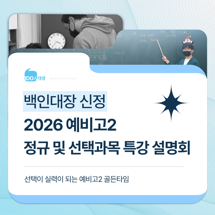백인대장 신정 예비고2 수학, 정규 및 선택과목 특강 설명회|'양'이 아니라 '결'이 다릅니다.