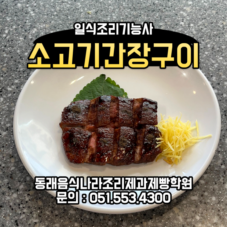 반갑습니다. 동래음식나라조리제과제빵학원입니다~ 오늘은 일식조리기능사 메뉴 소고기 간장구이 수업을 해보았습니다! 고기 손질부터 밑간, 팬 예열 후 굽기까지 기본 과정을 차근차근 연습해보았습니다! 오늘도 다들 열심히 참여해주셔서 감사합니다~ 문의사항 : 051.553.4300 www.naracook.co.kr 동래음식나라조리제과제빵학원 본점 최고의 합격률, 최고의 강사진, 최고의시설을 자랑하는 20년 전통의 동래음식나라조리학원 본점입니다 www.naracook.co.kr #부산요리학원 #부산요리 #부산학원 #한식조리기능사 #양식조리기능사 #중식조리기능사 #동래요리학원 #동래 #부산 #조리 #일식조리기능사 #복어조리기능사 #생활요리 #원데이클레스 #창....... <img src="https://blogthumb.pstatic.net/MjAyNjAyMjVfMTkz/MDAxNzcxOTk3ODI5NTU3.uUqVI29F4jB5Rblo8vrIpdpXGLHbRsQ2QluURh0s5Bwg.waGCNUtf10avme57CgNudLhj5ZLf2ba8fbbSdHwg2Dgg.PNG/1.png?type=s3" />