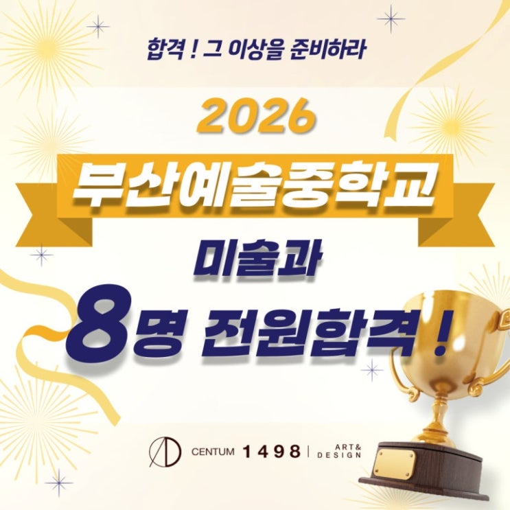 안녕하세요 예중입시명문 센텀1498김선주미술학원입니다. 예술중학교 진학, 아이가 처음 마주하는 중요한 관문 예술중학교 진학은 미술을 전공하고자 하는 초등학생에게 처음으로 마주하는 큰 도전이자, 소중한 기회입니다. 2026학년도 기준 부산예술중학교 미술과의 경쟁률은 2:1 실기시험 비중이 100%입니다. 실기의 비중이 높기 때문에 10월에 진행되는 예중 미술과 입시 실기시험에서 우수한 성적을 받아야 합니다. 합격하기 위해서는 좋아하는 마음만이 아닌 충분한 기초 소묘 연습이 필요합니다. 예중입시까지 몇개월 남지 않았는데 지금 준비해도 늦지 않을까요? 많은 학부모님들께서 걱정하시는 부분 중 하나이지만 예중 입시 준비에....... <img src="https://blogthumb.pstatic.net/MjAyNjAzMDRfMyAg/MDAxNzcyNjAyNDIzMzU2.Gft8SRlGnM2pCJLJbTSGpFMQcmzmzm4kx4gCmtLOqjEg.GGLR4SKIDU5QaVdhzF2cQqJnEFa5J7i59eSBVrh_ovEg.JPEG/005.jpg?type=s3" />