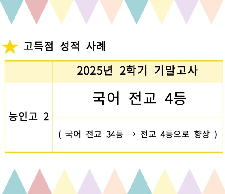 안녕하세요, 시선국어입니다. ^^ 오늘은 내신 고득점 성적 사례를 안내해 드리려고 합니다. 진작에 포스팅하려고 했는데 어쩌다 보니 좀 늦었네요. ^^ 중등부에서의 90점 이상 고득점 사례는 제가 다 기억하지 못할 만큼 많았습니다만, 오늘은 고등부 중심으로 고득점 사례를 안내합니다. 시선국어는 결과로 증명합니다. 시선국어와 함께 상위권을 선점하세요. ^^ <img src="https://blogthumb.pstatic.net/MjAyNjAyMDVfMjE0/MDAxNzcwMjk4ODUyMTY3.eucM-G4auUq3rJVZLLqt5ooDUrw3J4zgBopVxJf_VGcg.wit8vJjYw4kFxXCpOS38Dhhho3zSHEswBFwELSi-kuYg.JPEG/Screenshot_20260205-223818_NAVER.jpg?type=s3" />